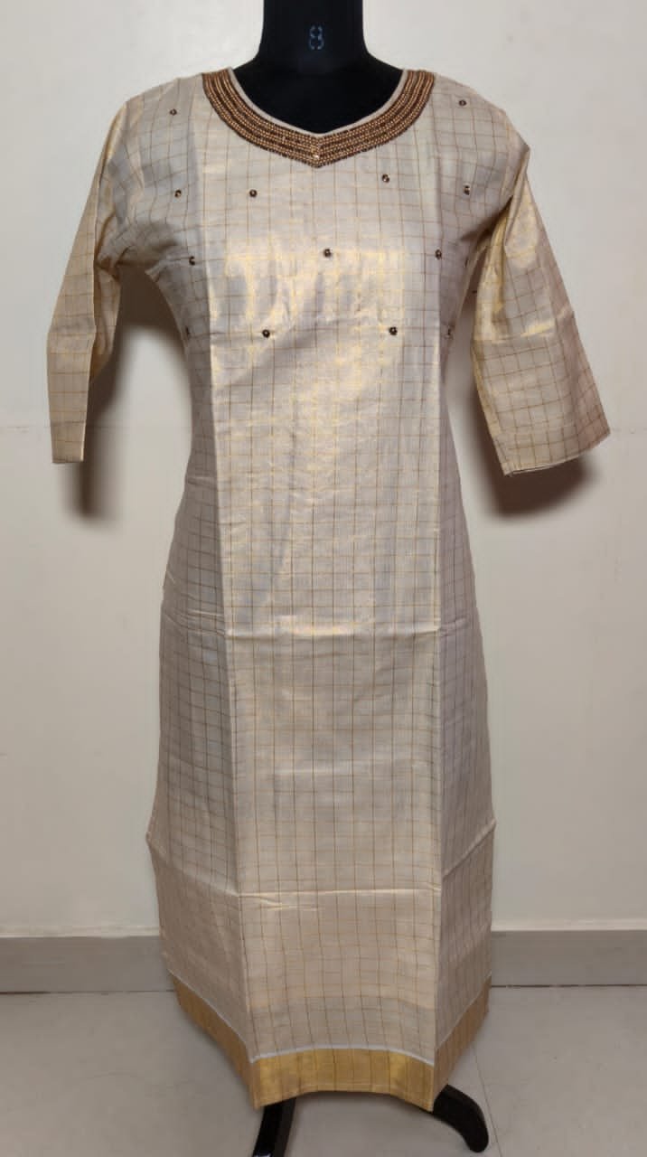 Kasavu Based Kurti with golden checked